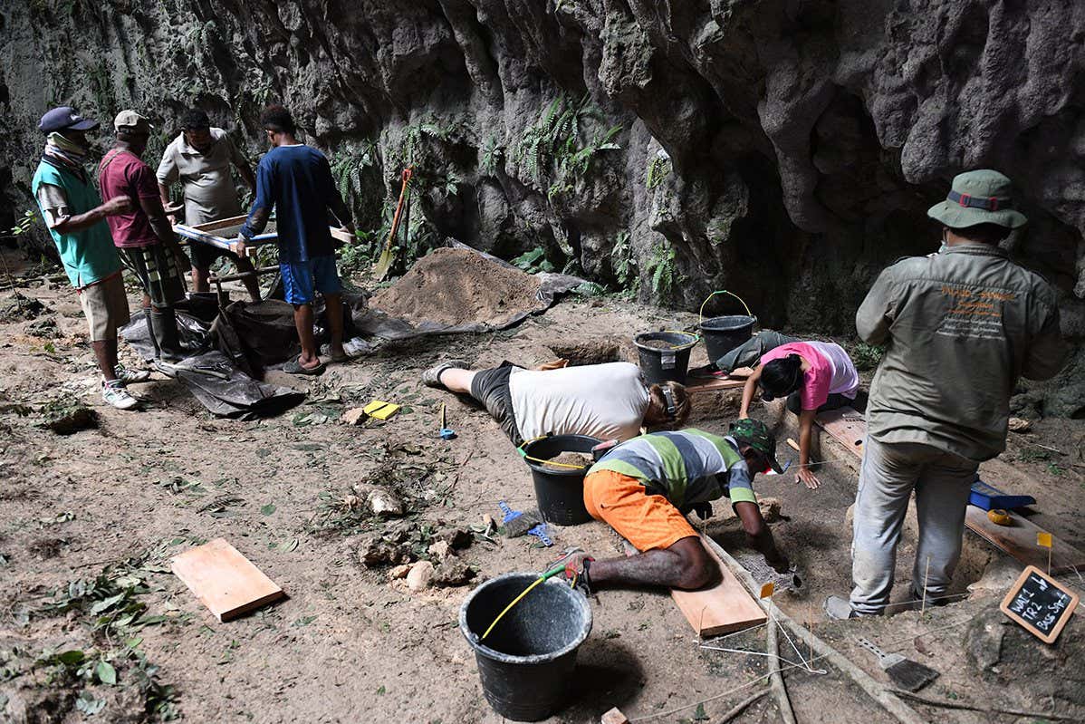 Excavations at Mololo cave on the island of Waigeo, where ancient plant resin was found